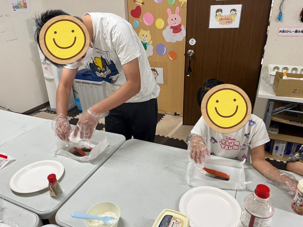 しっかりと味付けされた鮭は美味しいムニエルに大変身していました👏だし巻きも上手に巻き巻きしながら焼く小学生のお友だち😊中学生のお兄さんも安心して見守っていられるほど上手に作れるようになっていました。そして、最後はお料理大好きお姉さんがササッとだし巻きを作っていると…男性スタッフ2名が「参りました…😅😅」と言ってみんな大爆笑していました🤣🤣🤣午後からはお勉強タイムで夏休みの宿題や課題に取り組んだり、ソーシャルスキルのプリントをしたり、トランプ🃏やカードゲームで遊んだりもしました😊😊