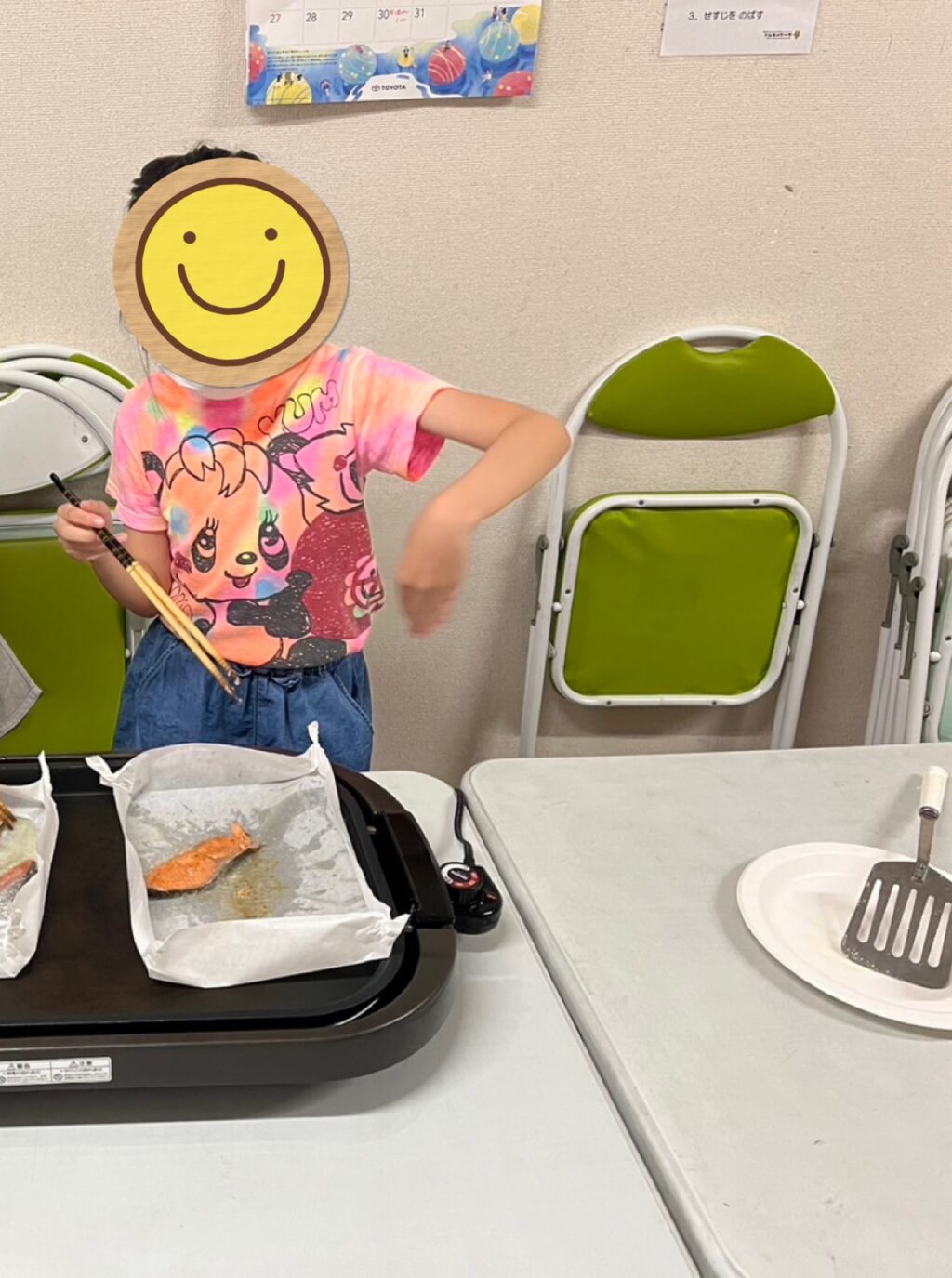 いろえんぴつのクッキングは調理器具の使い方、調理の仕方、衛生面を考慮して自分の食べる分のみを作るスタイル🔪「クッキング始めるから手を洗って準備して〜😃」とスタッフの声かけで手洗い、消毒、マスク、手袋をしてクッキングスタート❗️