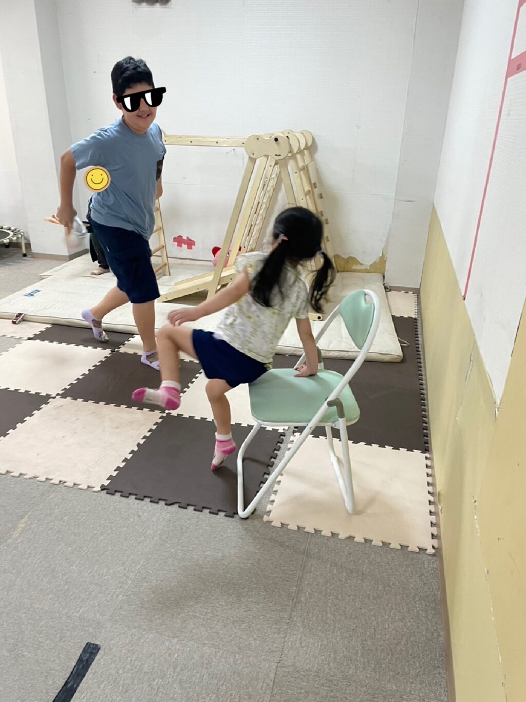 「あっち、こっち、椅子取りゲーム」をしました😊😊いろんな所に置かれた椅子に走って着席🪑🏃♂️💨みんなルールをちゃんと守りながら、汗びっしょりになるくらい思いっきり楽しんで身体を動かしました😊😊ゲーム中は小さなお友だちに席を譲る優しいお姉さんの姿も見られ感動するスタッフでした🥹🥹