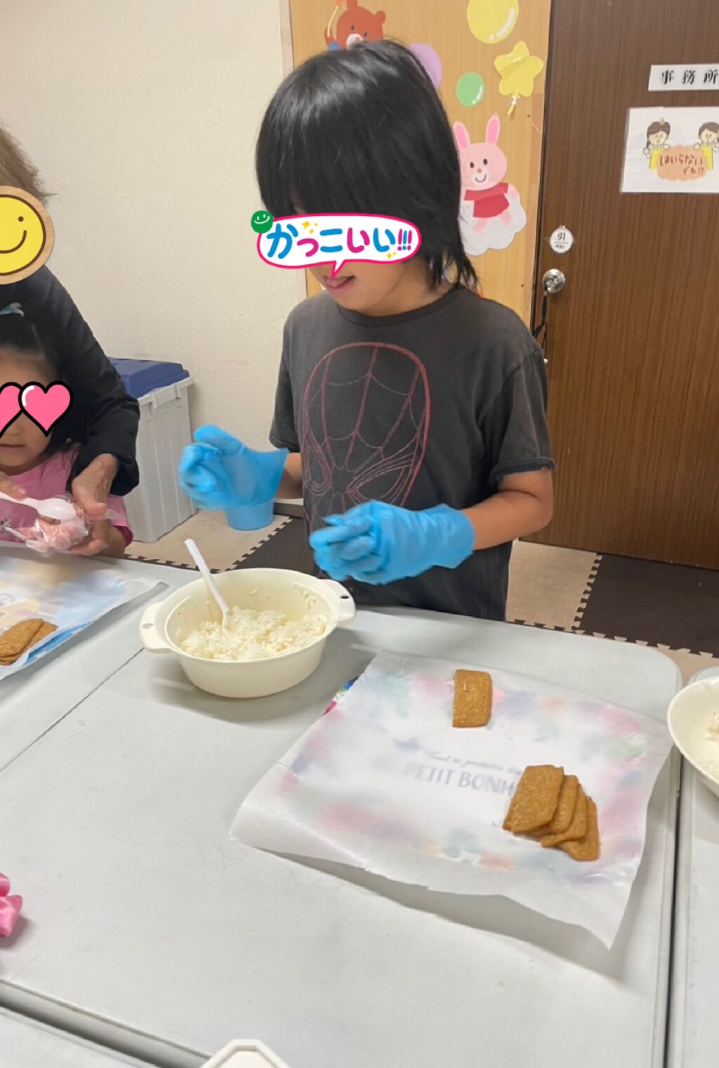「酢飯どうやって入れるん?」「こうやってスプーンでギュッてするんやで!」とお友だち同士で教え合う姿がとっても微笑ましい✨