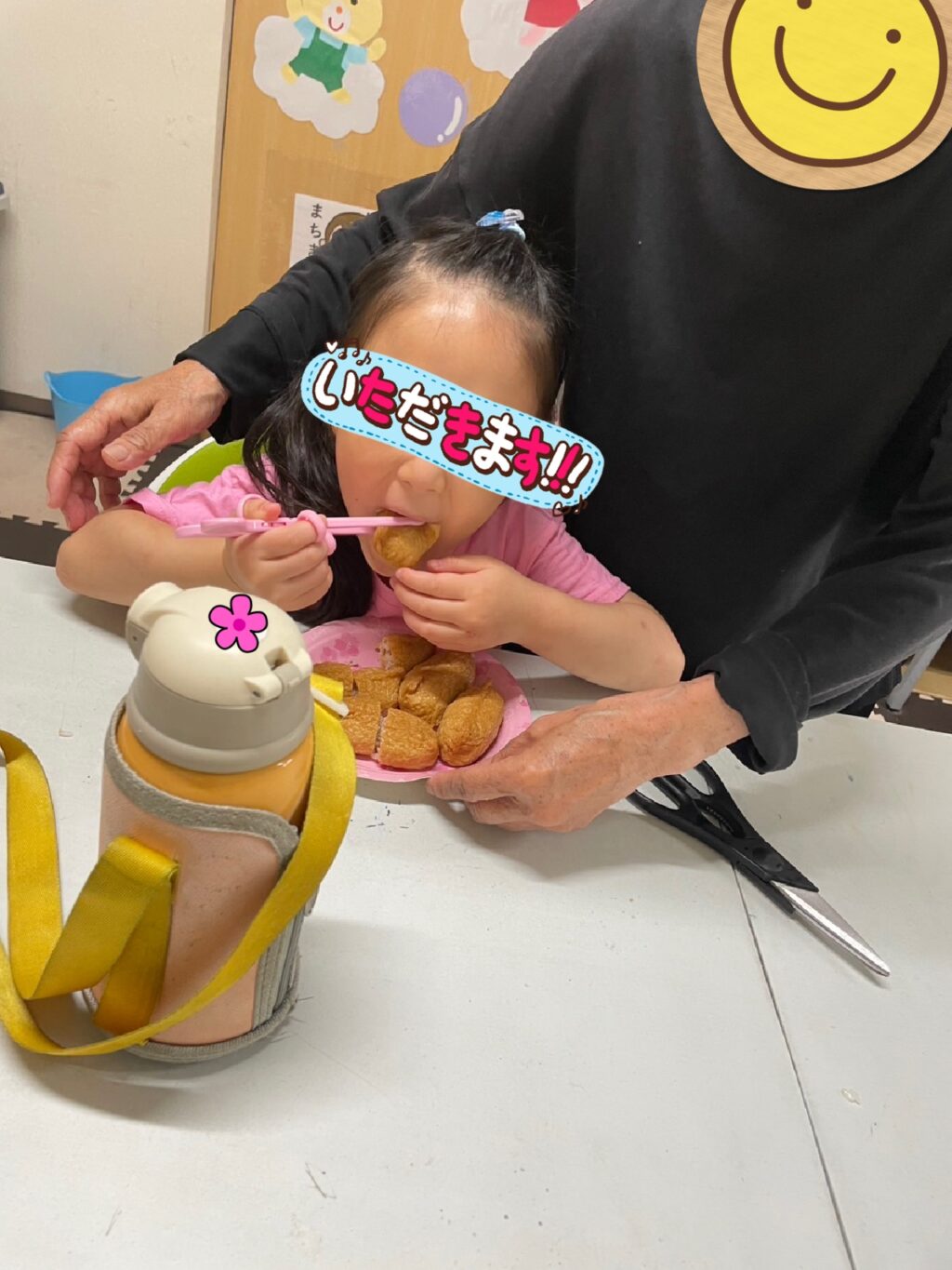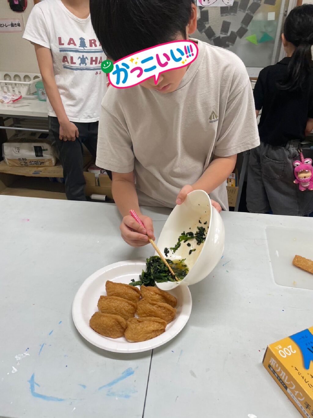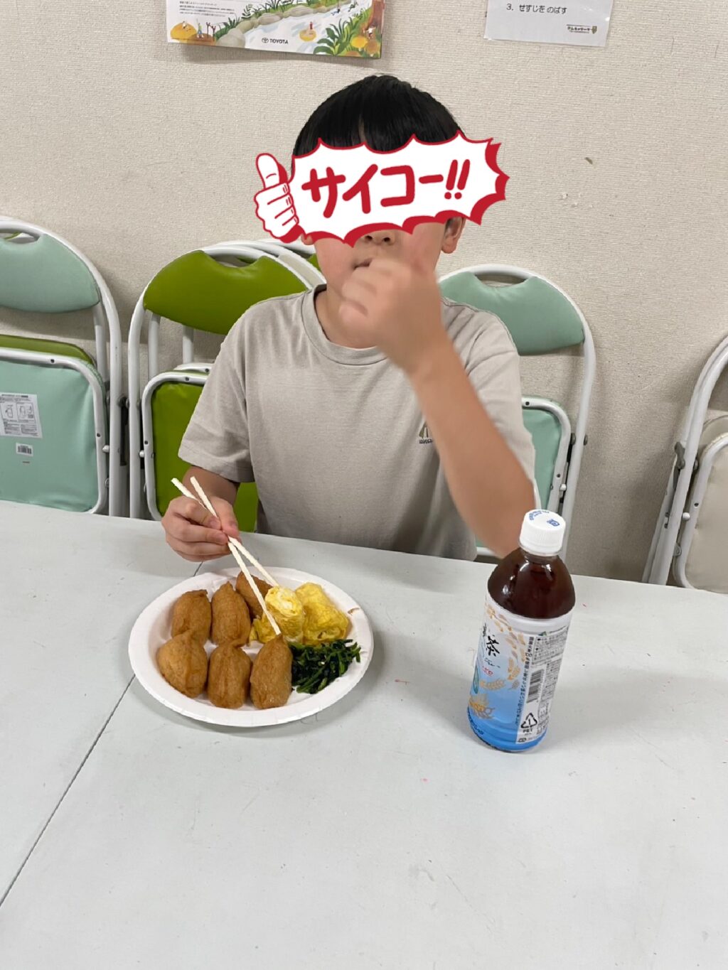 完成したいなり寿司とだし巻き玉子を前に「せーのっ、いただきまーす!」と声をそろえて、にぎやかで楽しいランチタイムになりました🎵