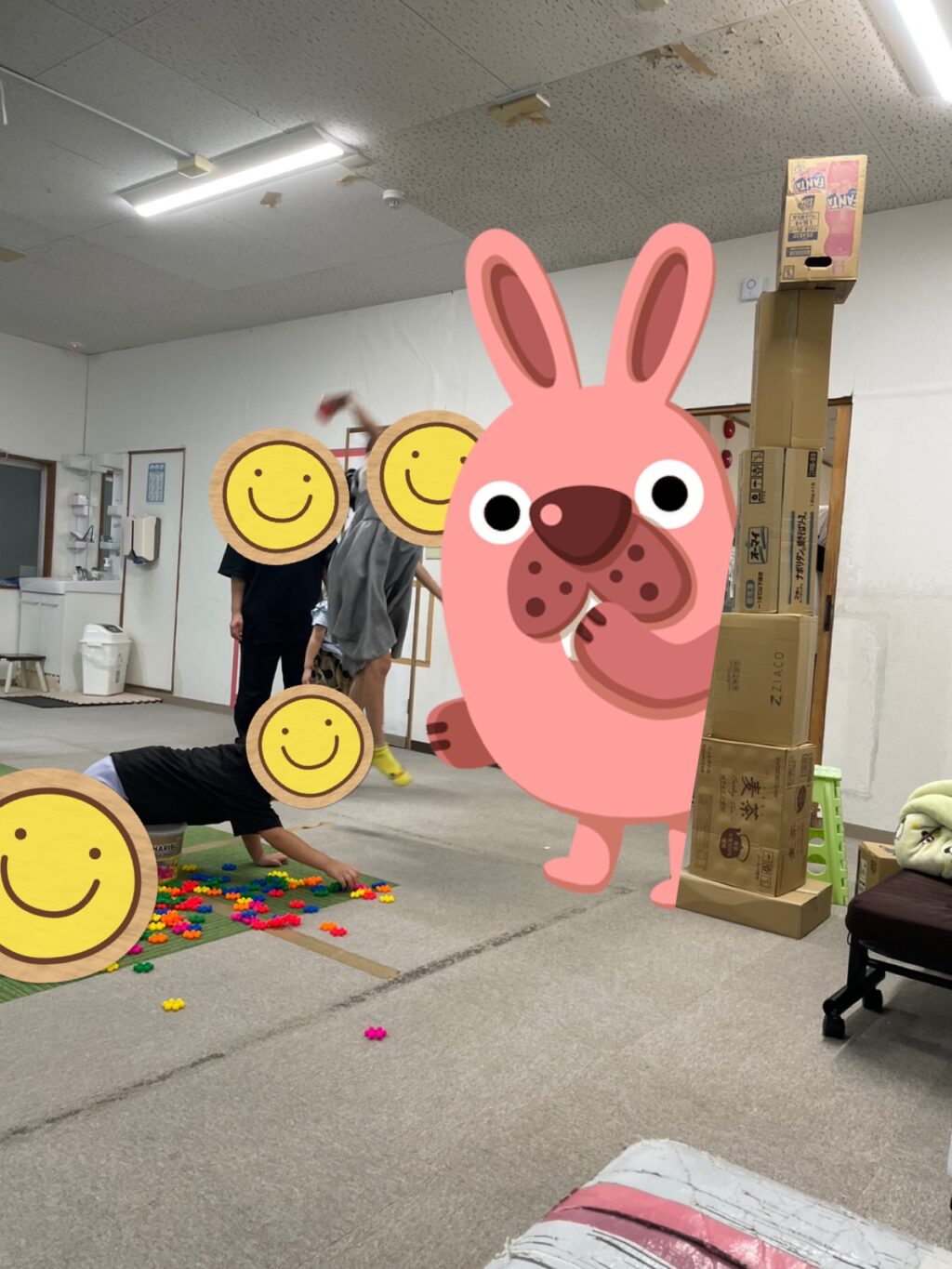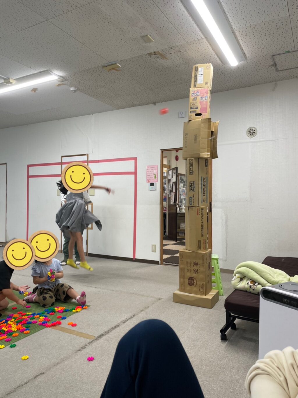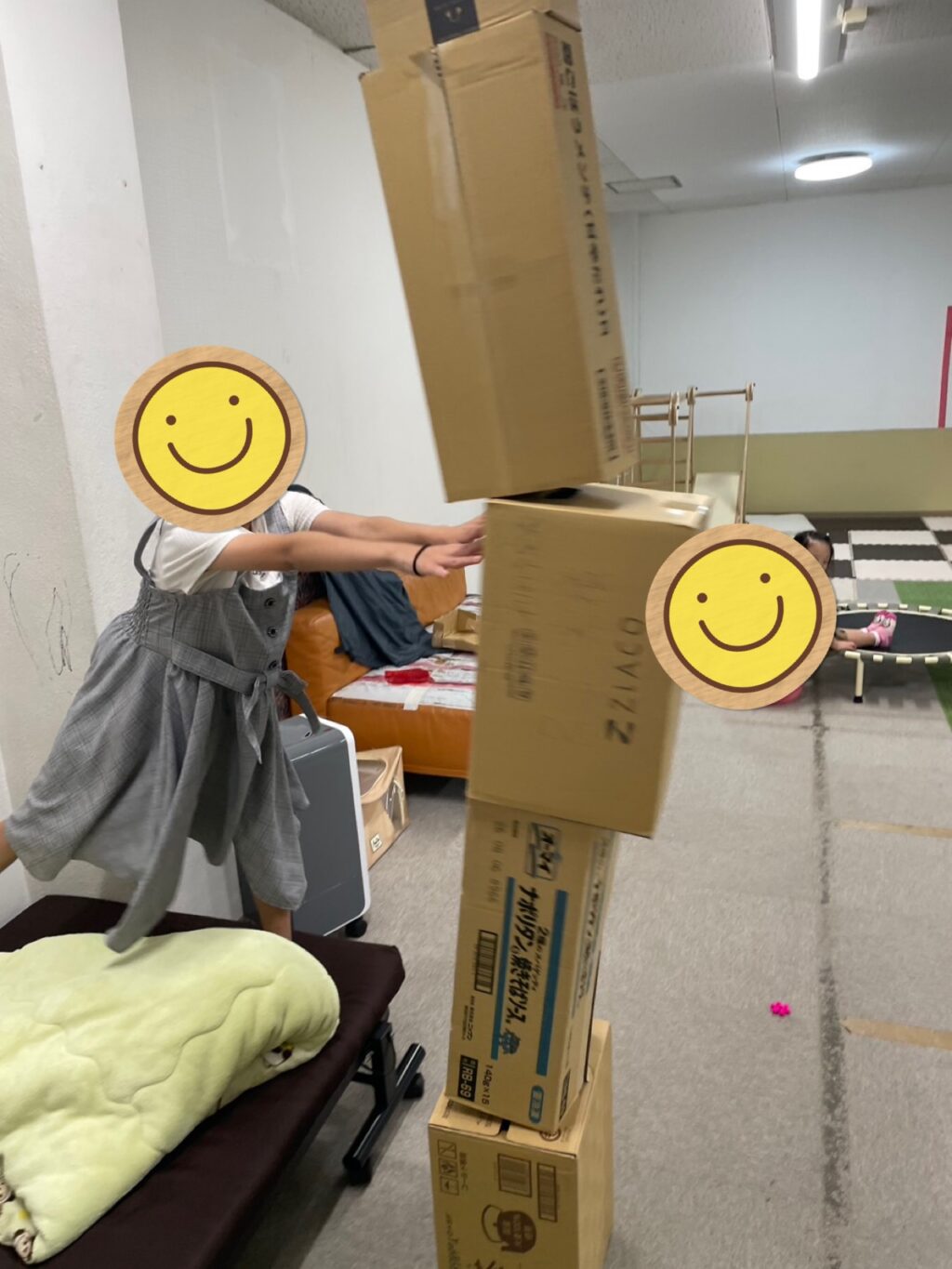 今日のイベントはスタッフが考えたゲーム(^^)ルールは簡単😊ダンボールを高く積み上げて1番上から1個づつボールを当てて落として行く
