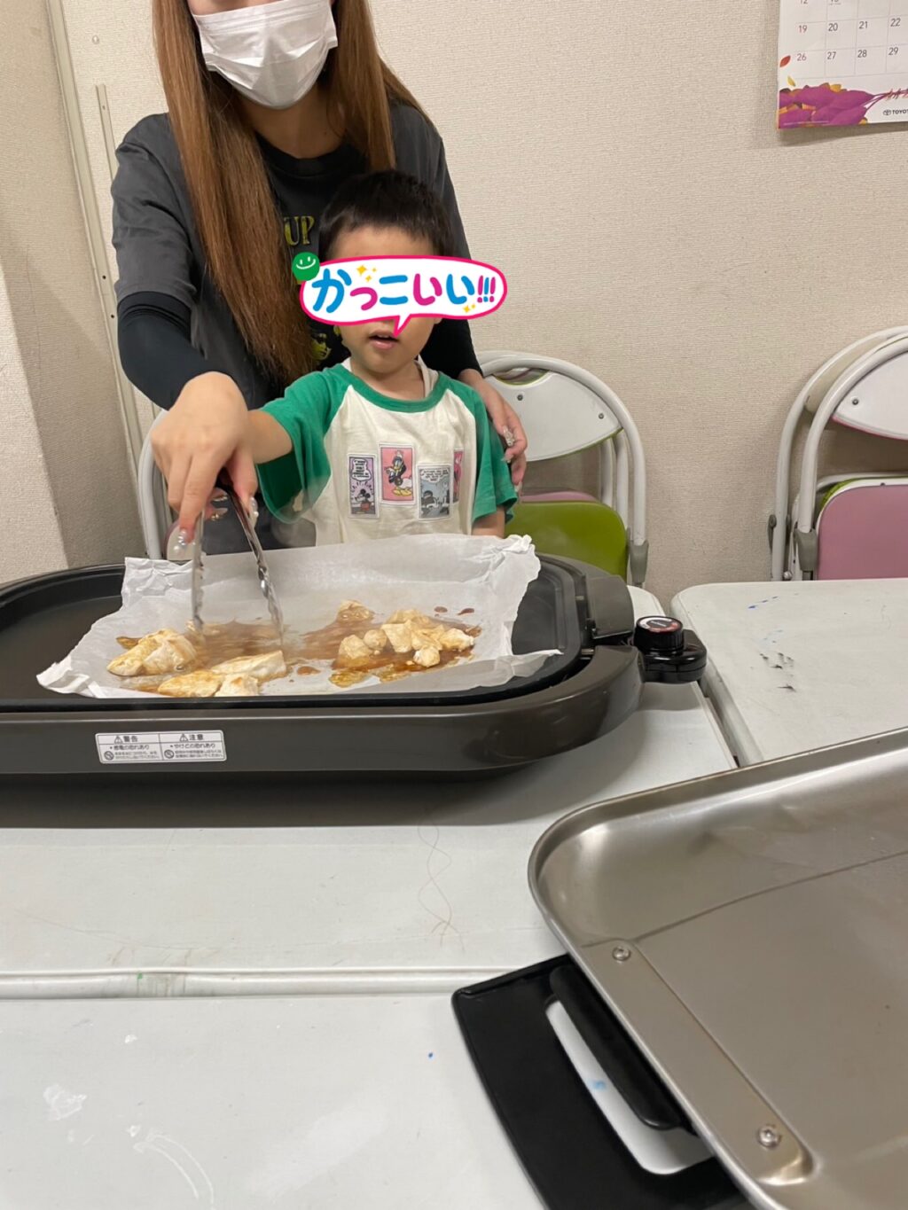 メニューはお友だちのリクエストで「照り焼きチキン🍗」をみんなで作りました☺️☺️