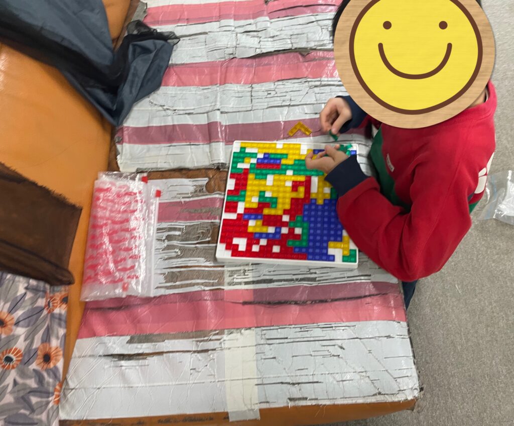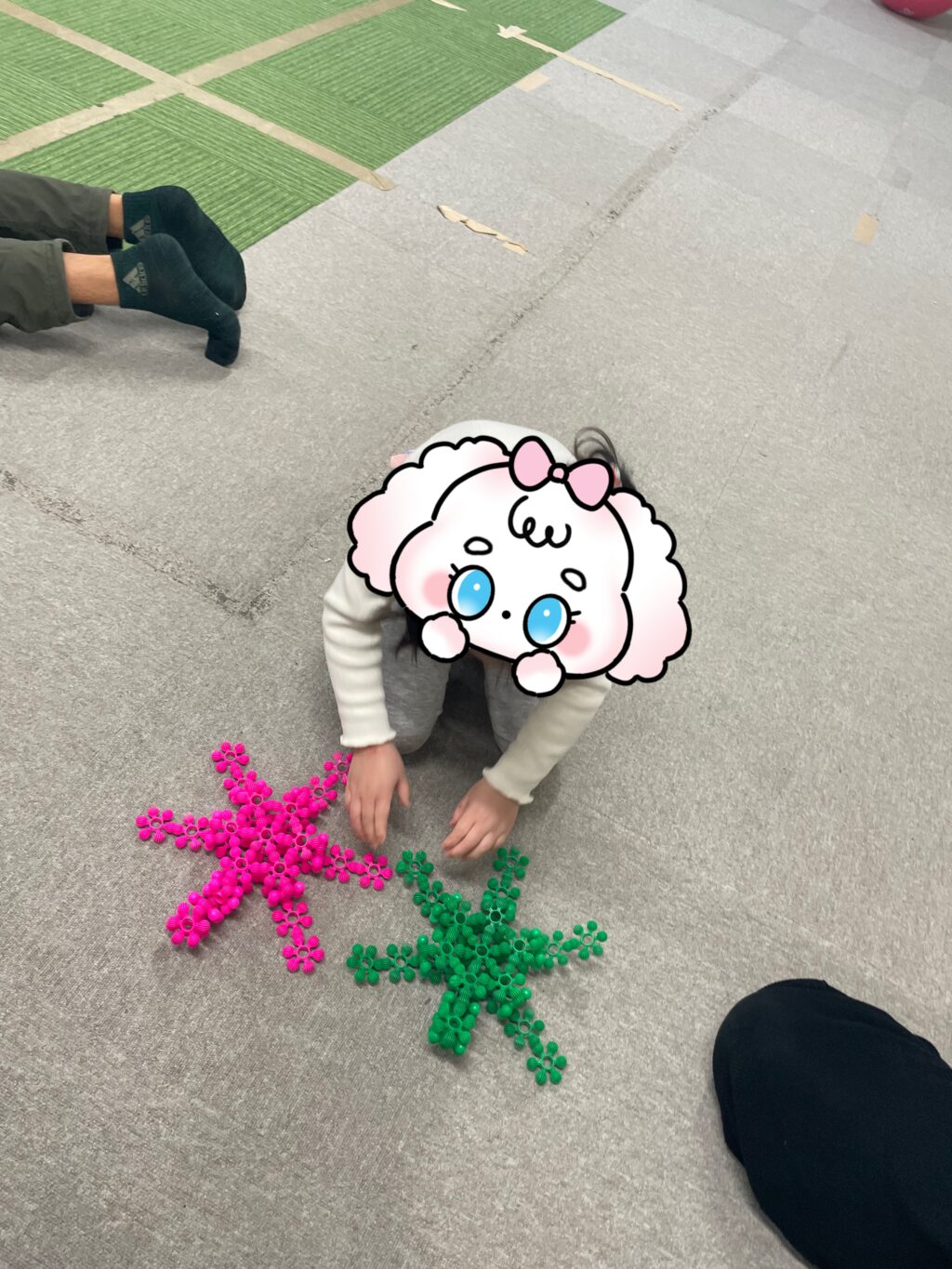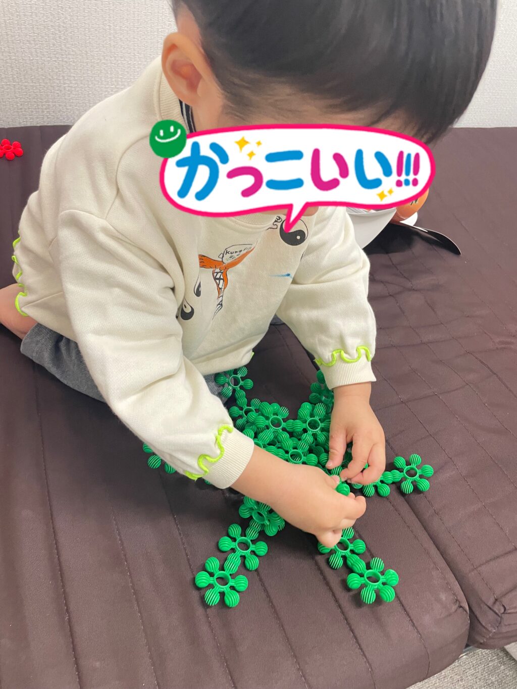 そんな訓練室では、スタッフと一緒にフラワーブロックで亀🐢を作る小さなお友だち達の可愛い姿が…♡