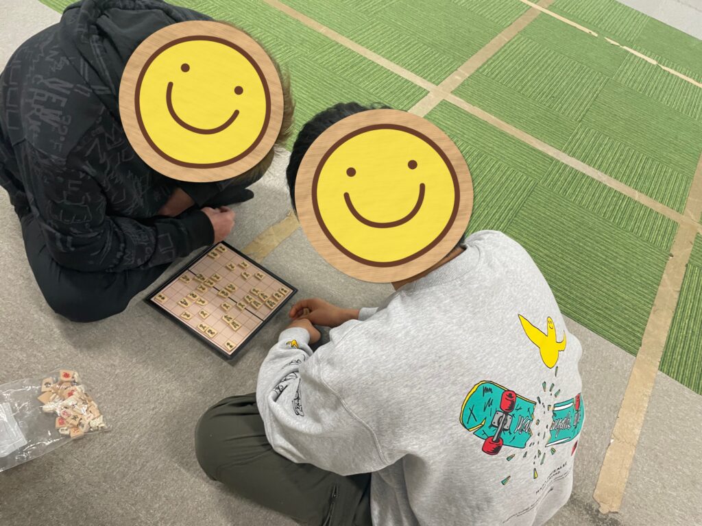 その横では、男性スタッフとお兄さんが将棋で真剣勝負🔥