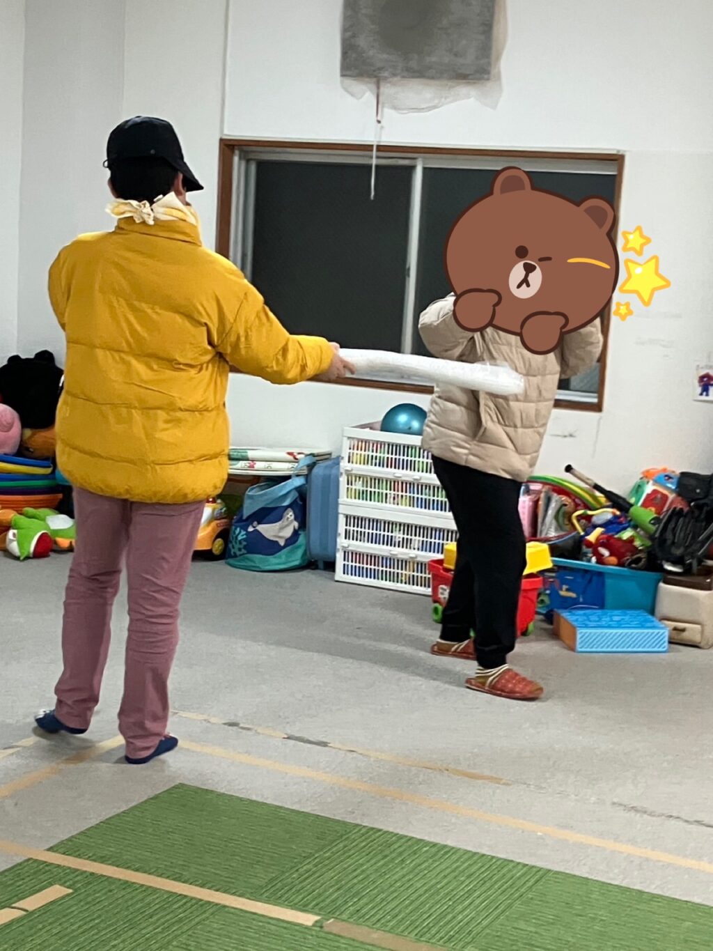 早帰りのお友だち達を見送ったあとはイベントタイム❗️今日のイベントは、目隠しタッチ🪖