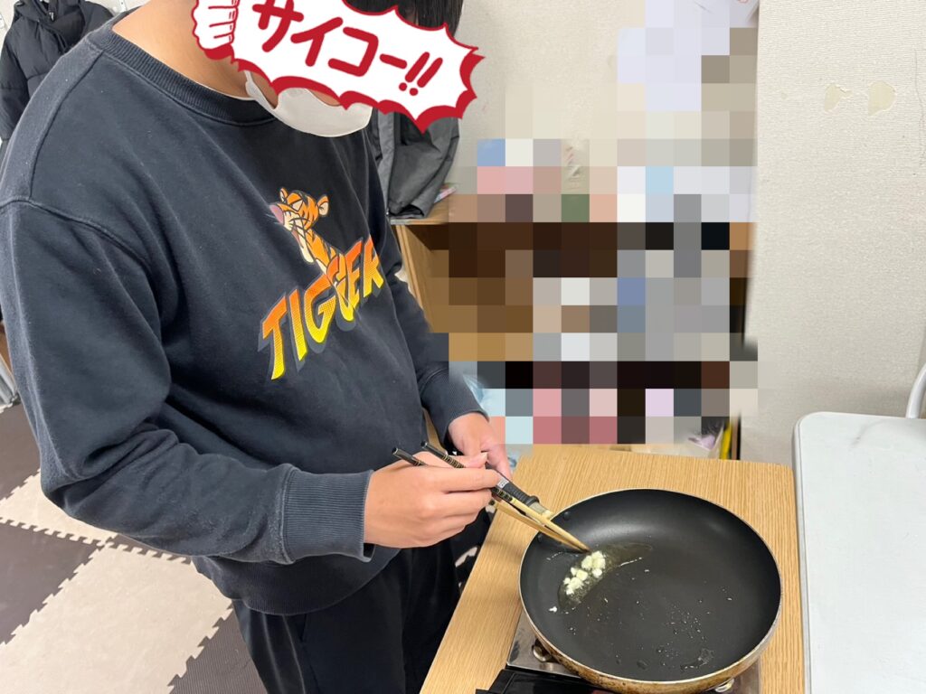 スタッフの「クッキング始めるよ〜😃」の声に