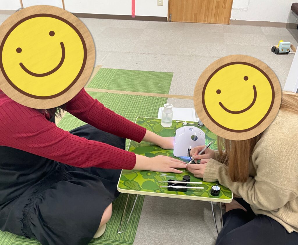 今日は一足早く冬休みに入った高校生のお姉さん(^^)ネイルアーティストの資格も持っているスタッフに朝からお願いして可愛いく変身💅出来上がったネイルをスタッフ1人1人に見せて大喜びしていました😊😊