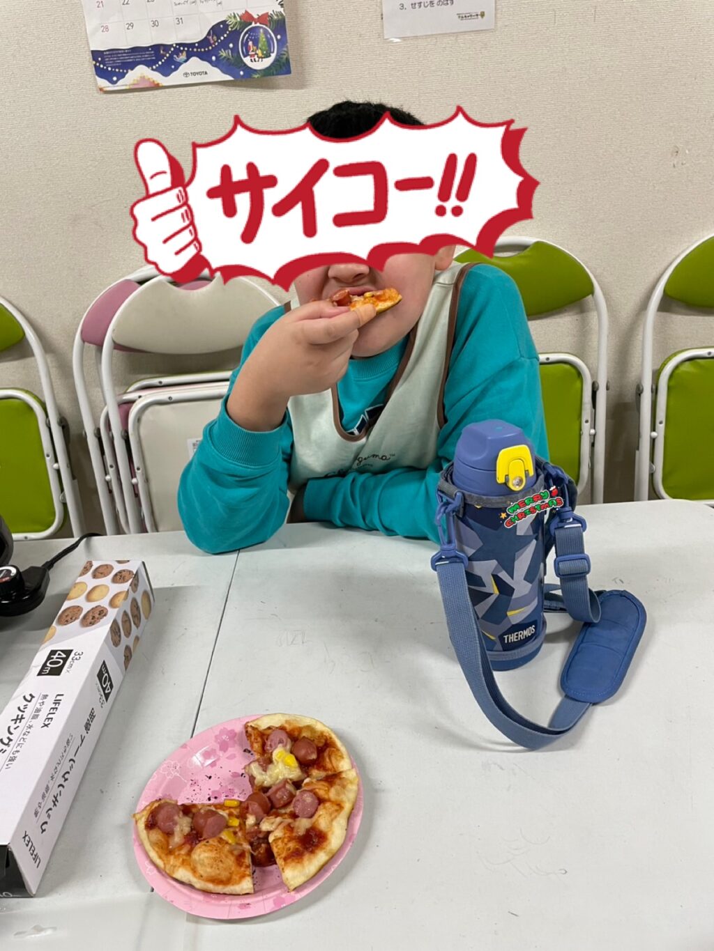 とみんな初めての挑戦でも楽しんでくれていました☺️そして出来上がったピザ🍕は味も生地もバッチリ👌のピザでした🍕