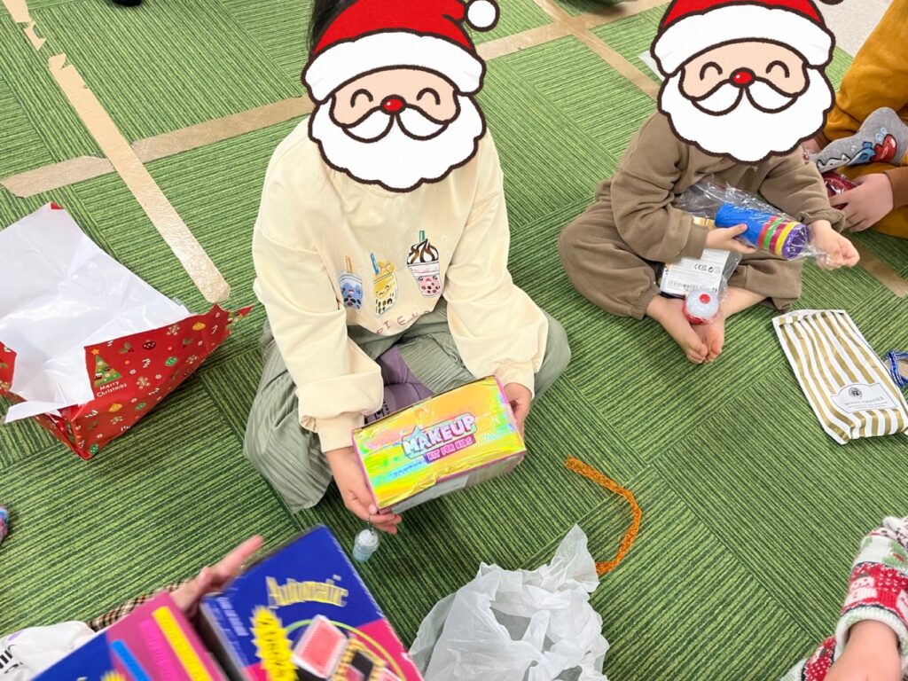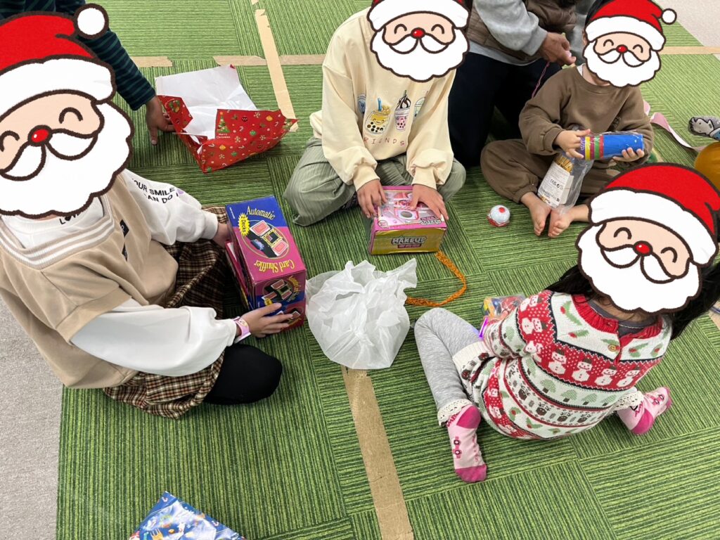 すると…あわてんぼうのサンタクロースさんがテーブルルームにプレゼント🎁を置いて行ってくれたのを見つけてくれた小さなお友だち達🎁早速、開封の儀🎁そして、そこからはみんなでプレゼントで遊びました(^^)