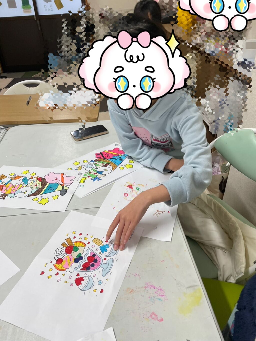と、それぞれ好きな塗り絵を選び、真剣な表情で取り組んでいました🎨
