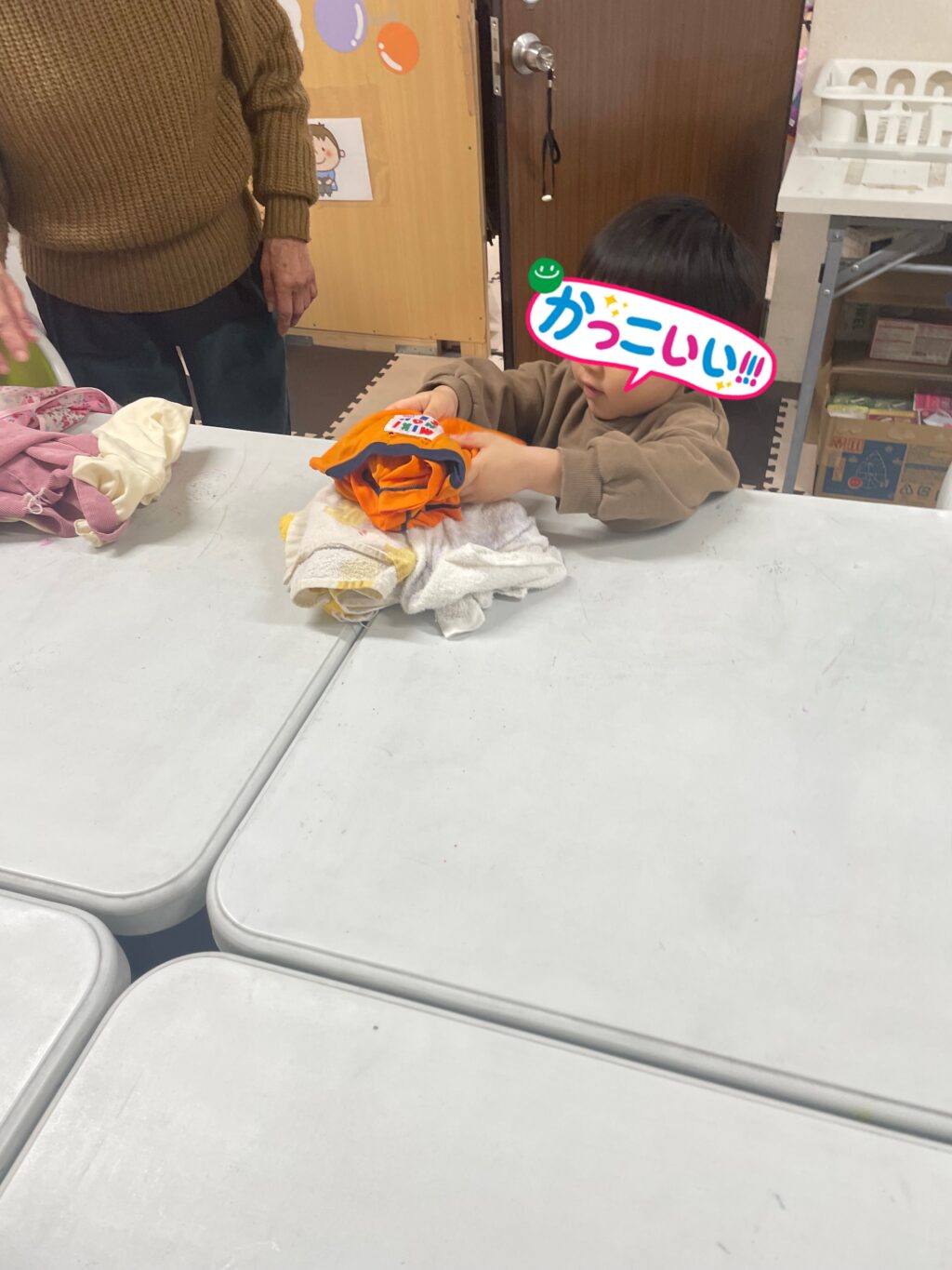 小さなお友だちも負けず劣らずパワフルで、なんとスタッフと一緒に洗濯物を畳むお手伝いをしてくれたのは最年少のお友だち🤩