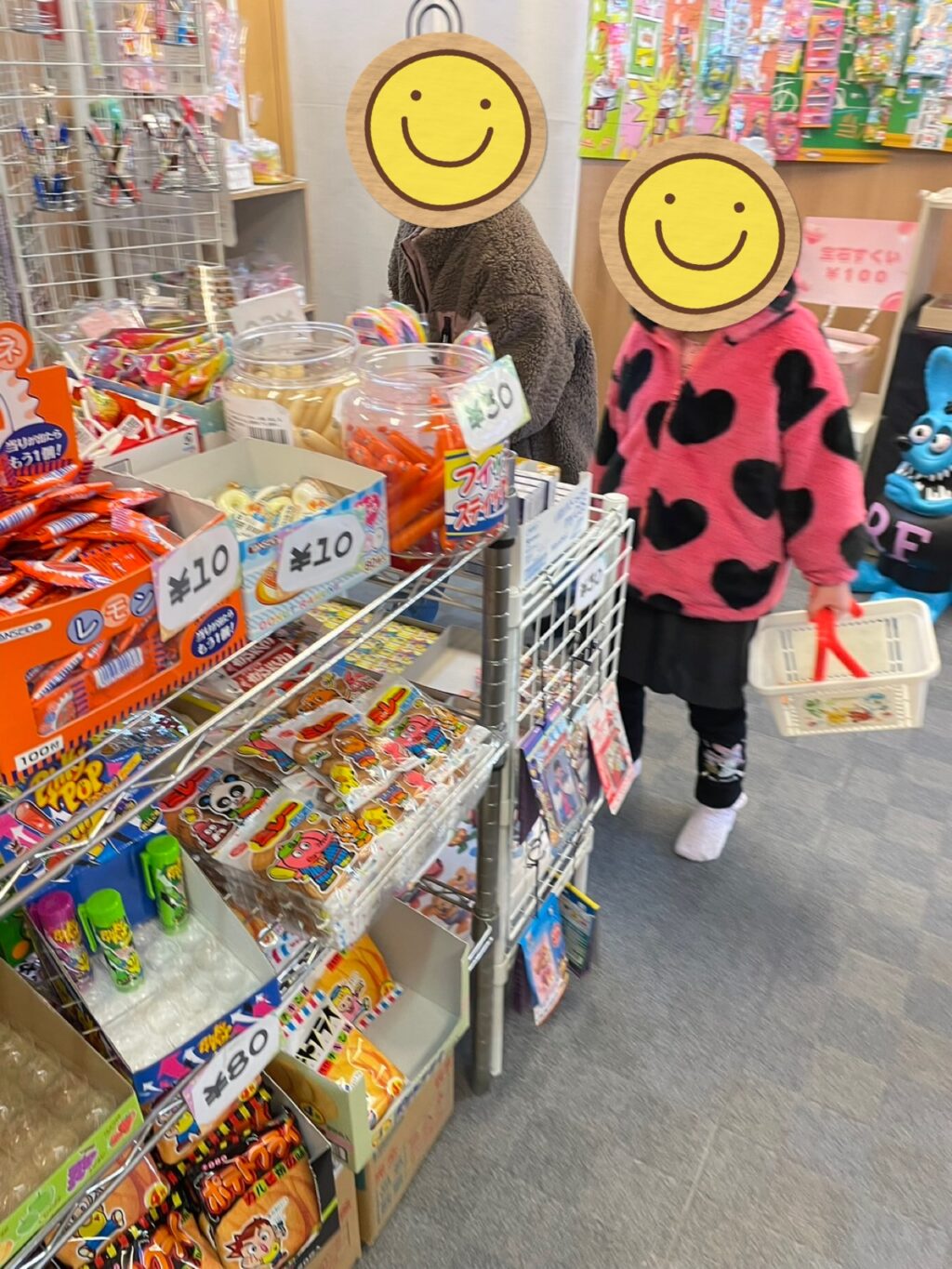 お店に着くと、ずら〜っと並ぶ駄菓子に目をキラキラさせながら、