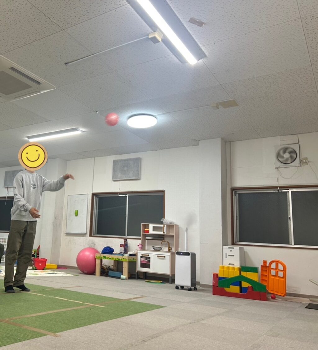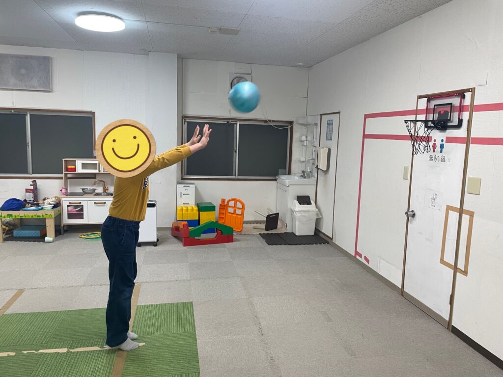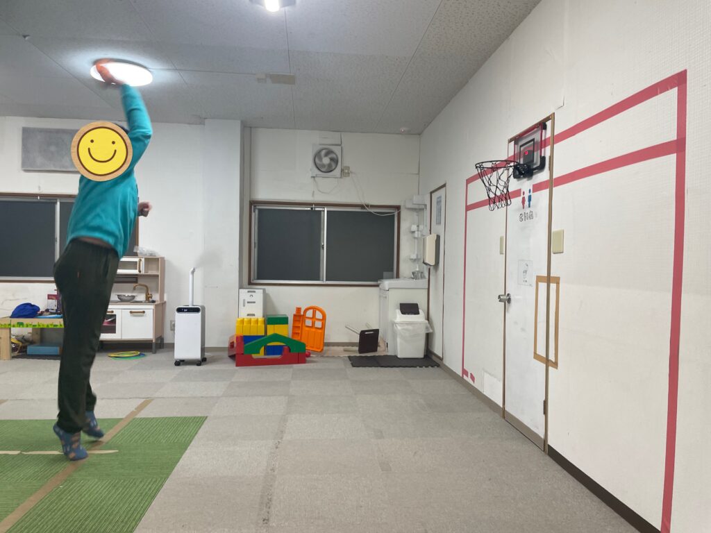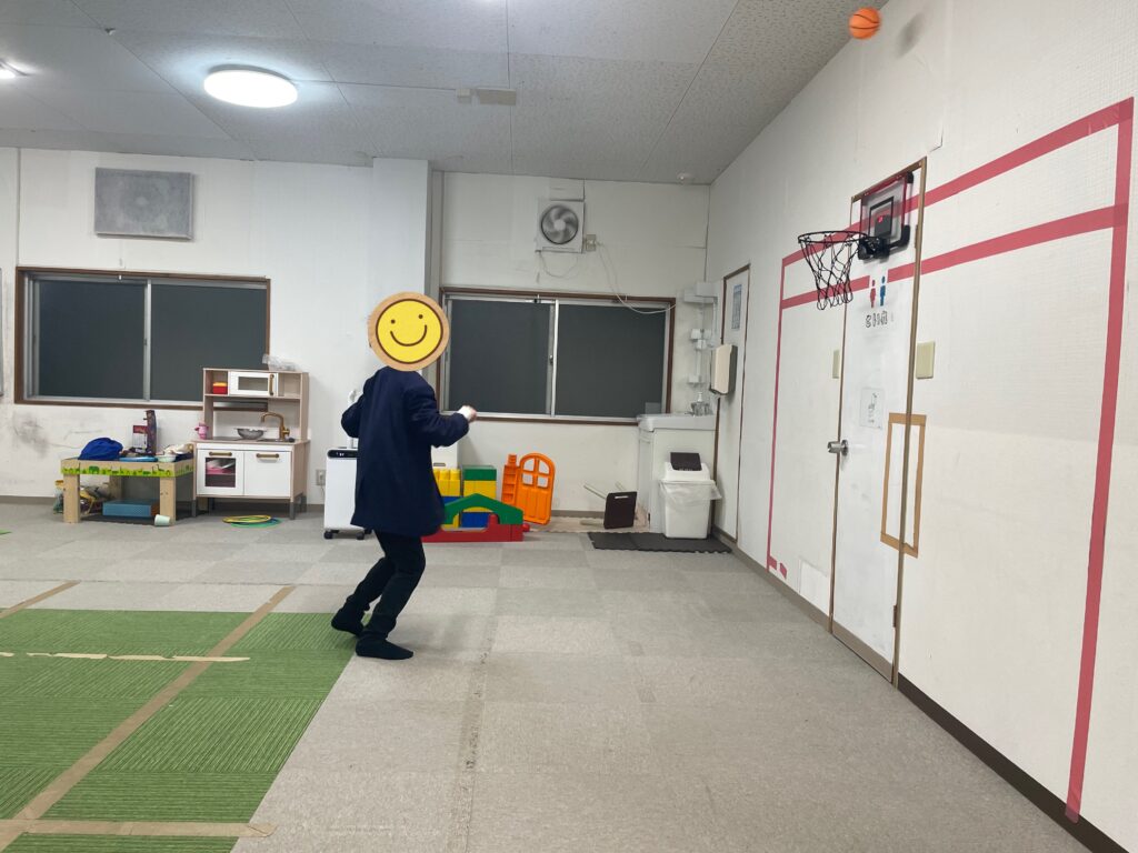 「これは近いから余裕やわ👍」と言うのはバスケットゴールをサンタさんにお願いしていたお姉さん👩「それでは順番に並んでスタート❗️」とスタッフのかけ声で順番にゴールに向かってシュートするお友だち達🏀お友だちと一緒に「私もやりたいから並ぶ〜😃」とスタッフも一緒に並んでシュート🏀1番最初にシュートを決めたのお姉さん👏すると「次はその後の線からシュートするわ😃」と難しいシュートに挑戦していました🏀シュートをするお友だちの後ろで並ぶお友だち達は「〇〇くんめっちゃ惜しい💦」や「〇〇くんあと少しやのに〜」「ナイス👍今の入ると思ったのに〜😆」と自然と前向きになる言葉がお友だち同士で溢れる訓練室に☺️👍一緒に参加していたスタッフも応援に思わず力が入っていました😤段々とコツを掴んだお友だち達は順番を守りながら、さらにリズミカルにシュートしては入れ替わり、まるでバスケ部のシュート練習をしているような光景に🤣お友だち達も