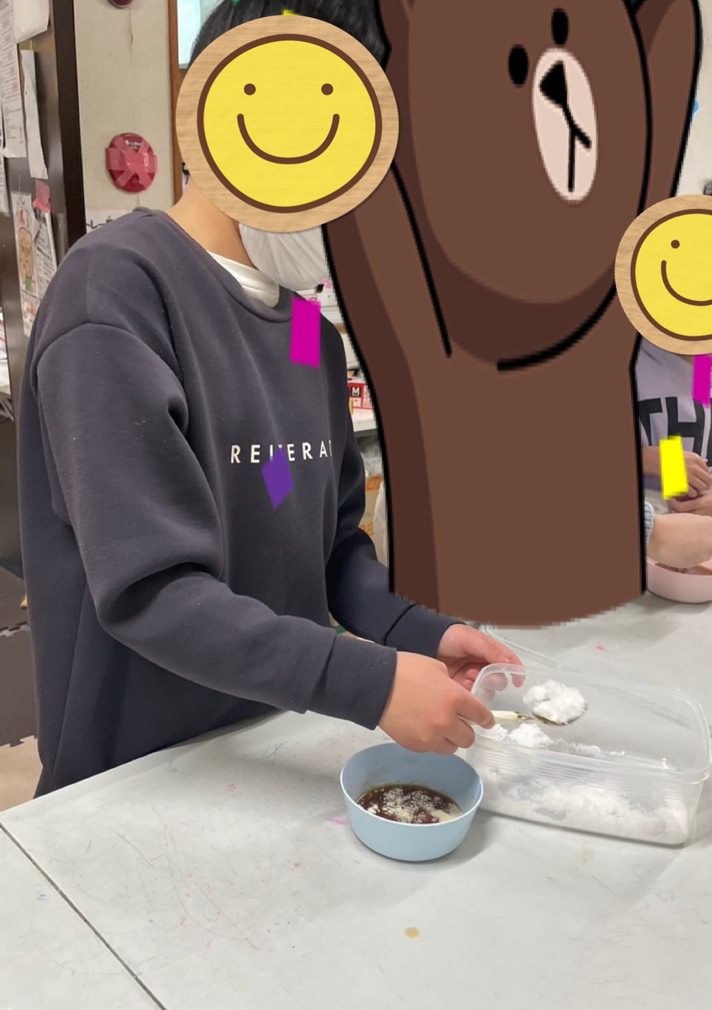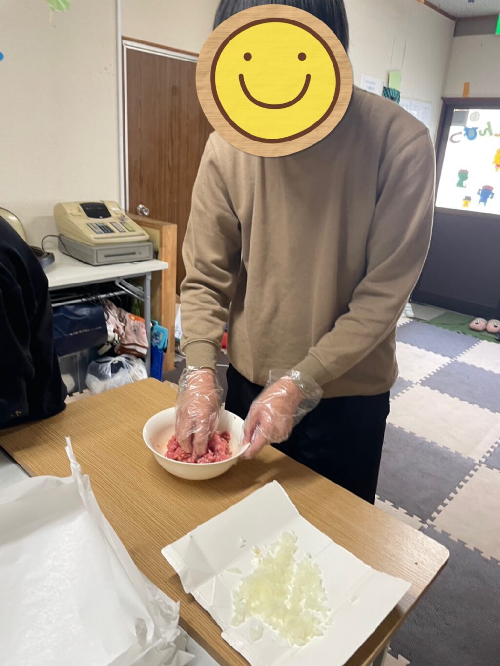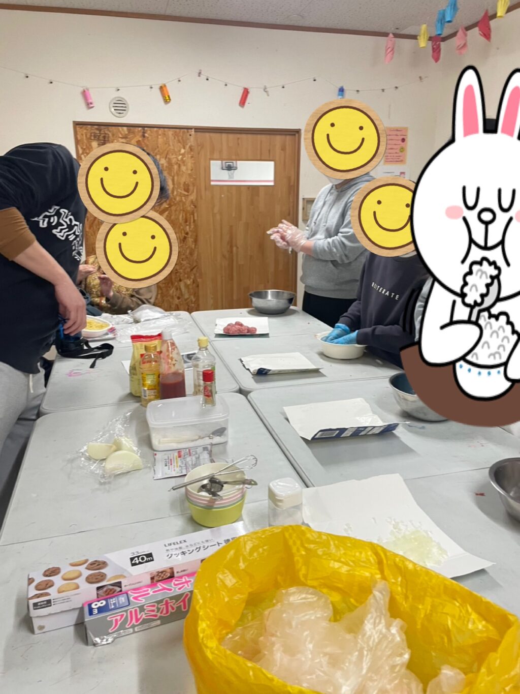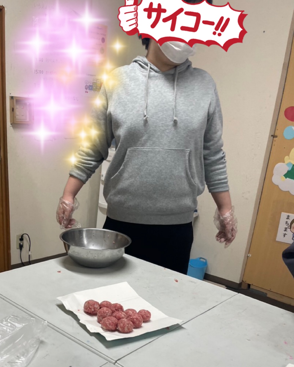 手洗い、消毒、マスクに手袋をしてクッキングスタート👨🍳👩🍳