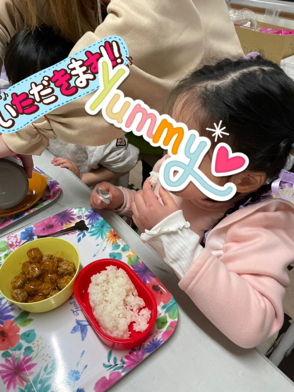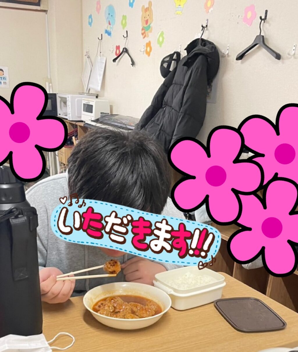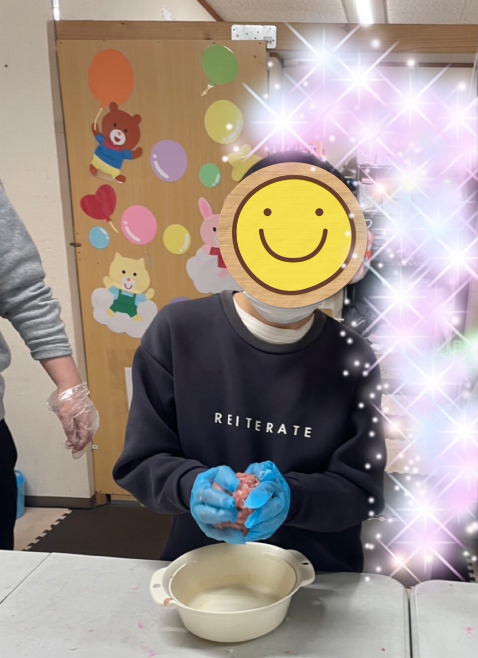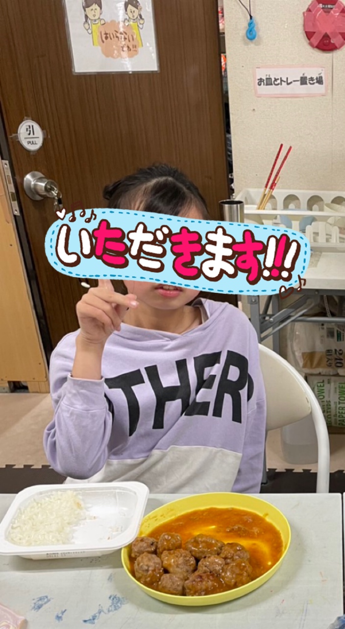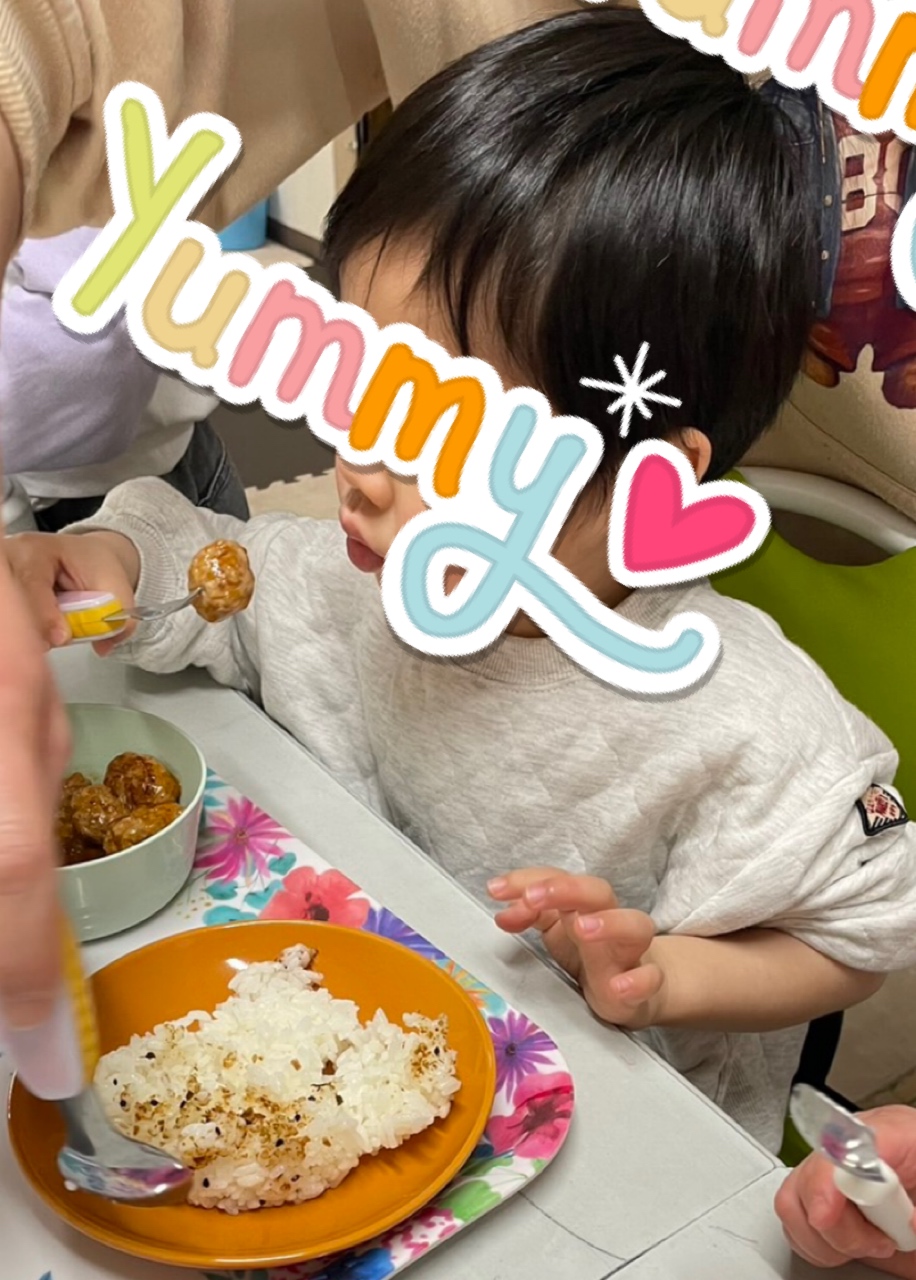 アツアツのミートボールを目の前に「早く食べたい❗️」と言って大きなミートボールを頬張るお友だち😆「夢が叶って良かったね☺️」と声をかけるスタッフにほっぺが落ちそうな笑顔で応えていました😂今日のクッキングも大成功💮