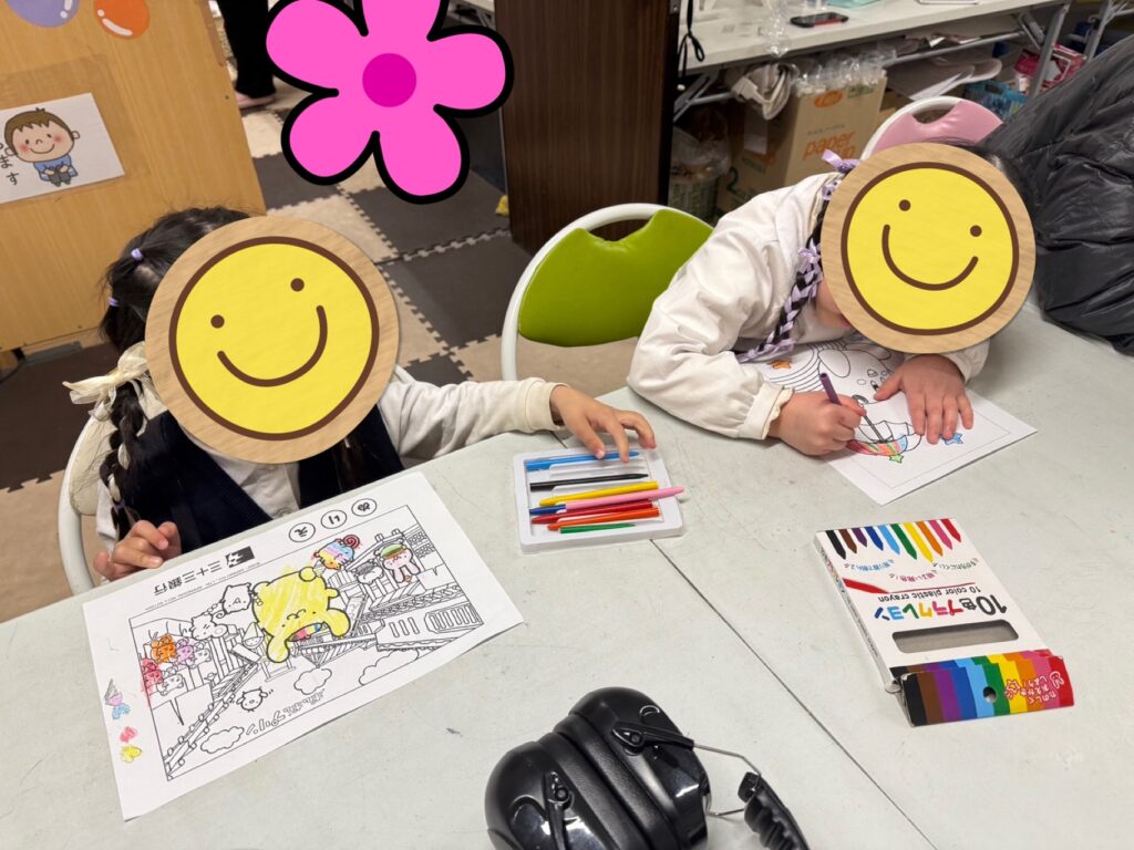 終わったからスタッフの塗り絵をお手伝いしてくれるお友だちまで😊