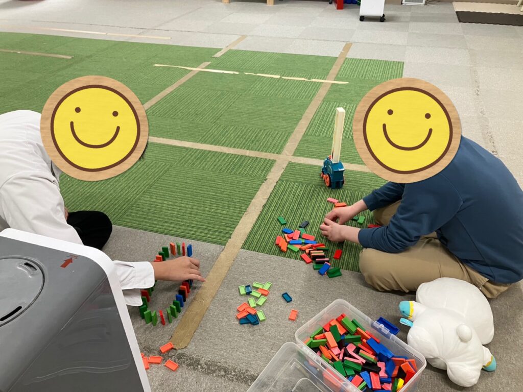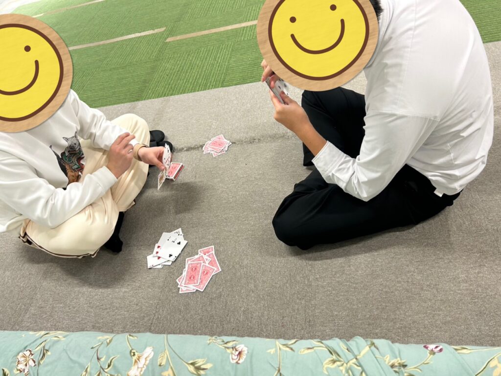 今日のお外はパラパラと雨☔でしたが訓練室では元気にドッジボールをするお友だち達🏀やトランプの真剣勝負をする男性スタッフとお兄さん🃏そして、ドミノに集中するお友だち😊とみんな好きな事をして過ごしていました☺️