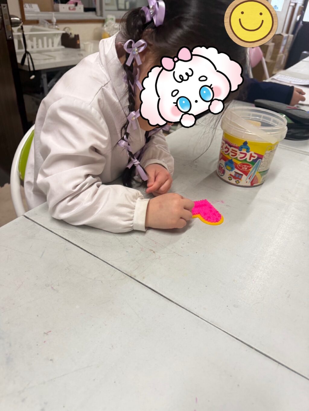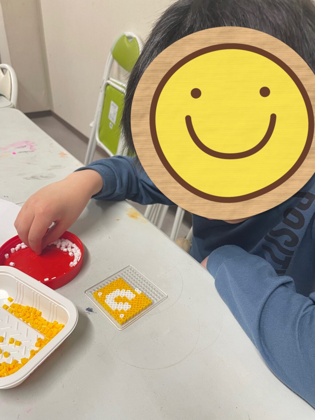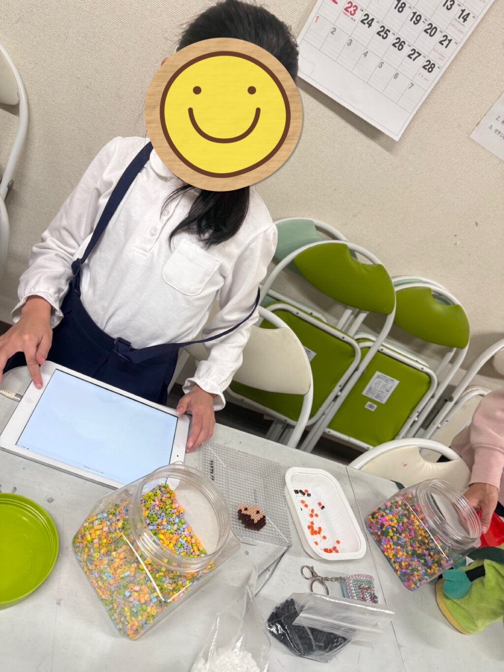 「アイロンビーズ」をみんなでしました😊タブレットで推しの図面を調べて「向井康二」を作りあげたお友だち👍それを見たお友だちは