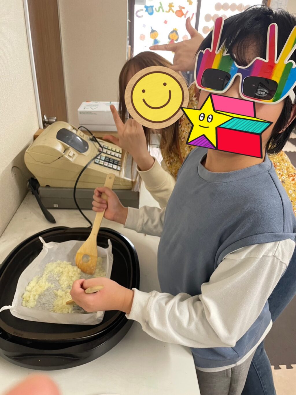 サングラスをかけてクッキングに参加したお友だちは