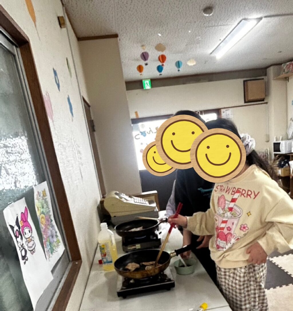 本日のクッキングは、スタッフのサポートはほんの少し🤏それでもお友だち達は自分の食べる分を ほぼ1人で調理することができ、頼もしい姿にスタッフも思わず感動✨
