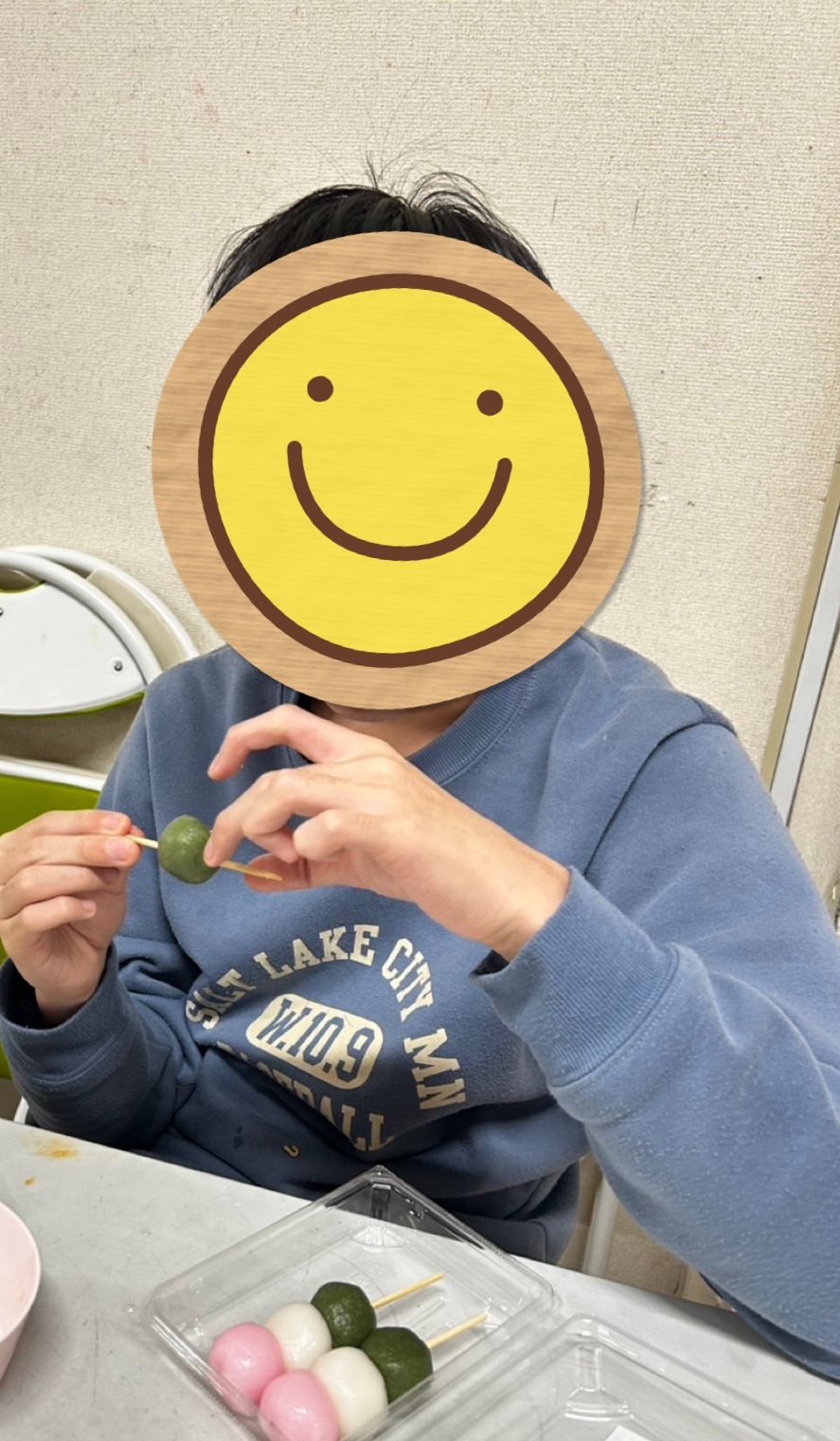 大・大・大好きな三色団子🍡を美味しそうに頬張るお友だち😋😋😋