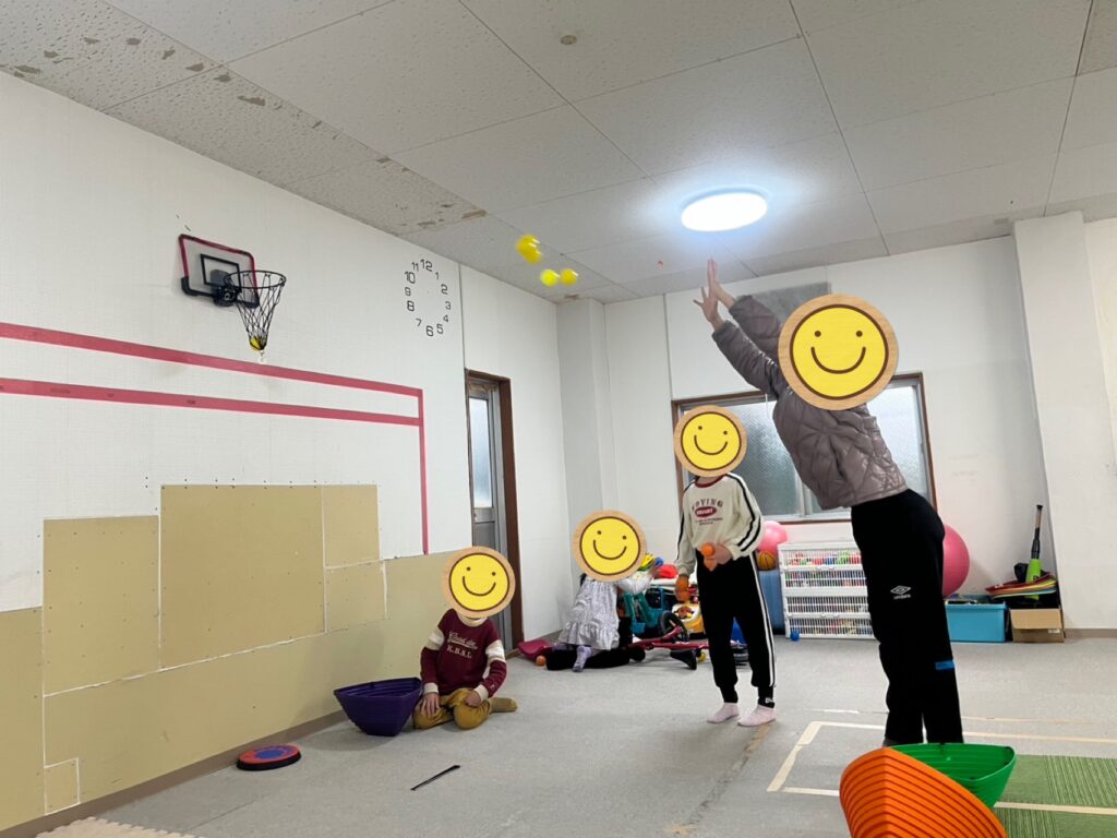 「玉入れゲーム🔵🔴🟠」です😆