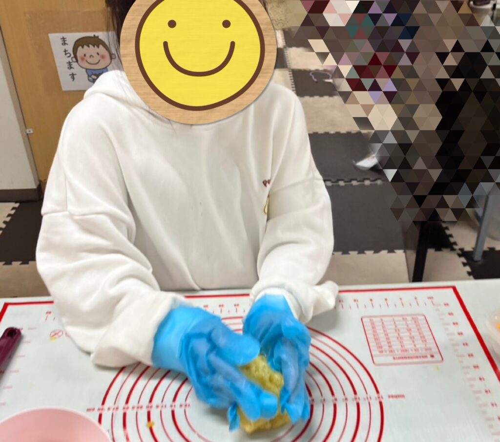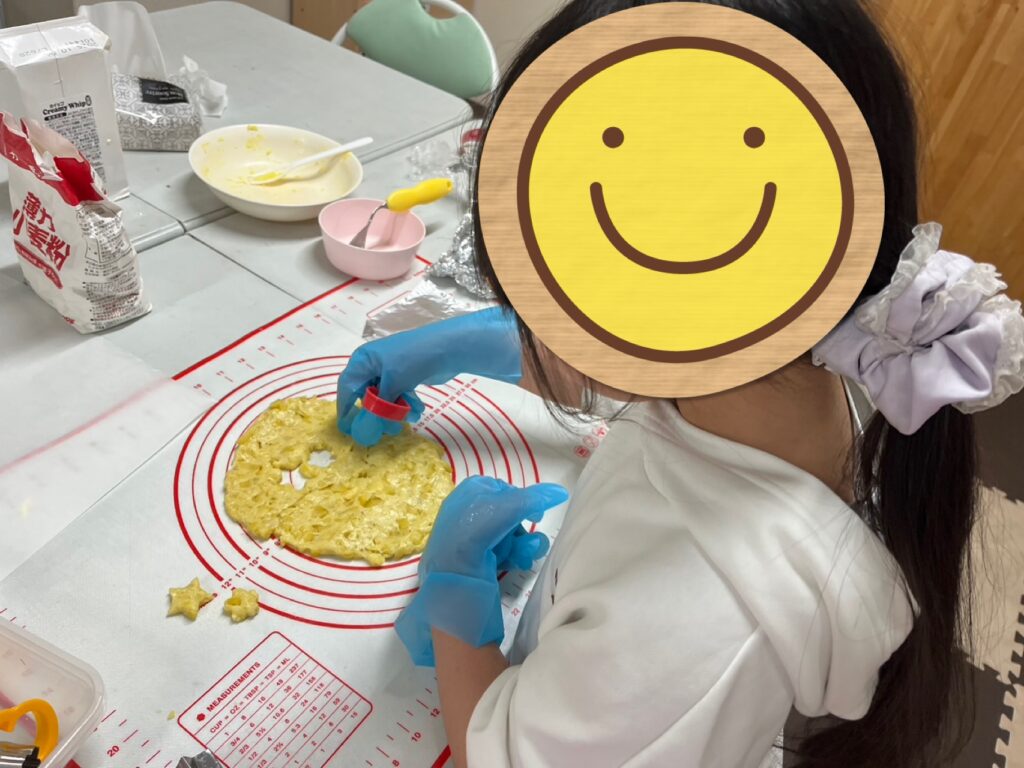 ・さつまいもクッキーでは、生地を伸ばして型抜きに挑戦😊