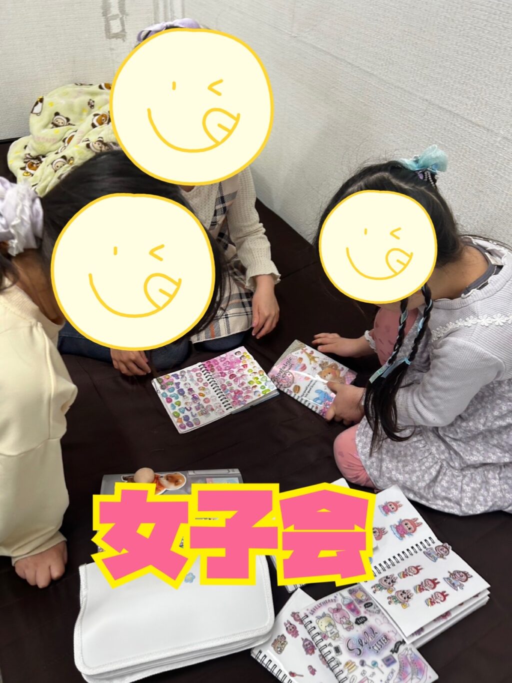 午前中から「女子会👧👩」で流行りのシール交換会が開催されて「これ可愛い😍」などキャァキャァと可愛らしい声が聞こえていました😽お兄さんとバスケット🏀で盛り上がるのは小学生のお友だち達😺みんなでワイワイお話しながら楽しいランチタイム🍽️が終わり、お勉強の時間は小グループでのお勉強もみんな頑張って取り組んでくれていました✏️フリータイムが終わったらいつものイベントタイム‼️