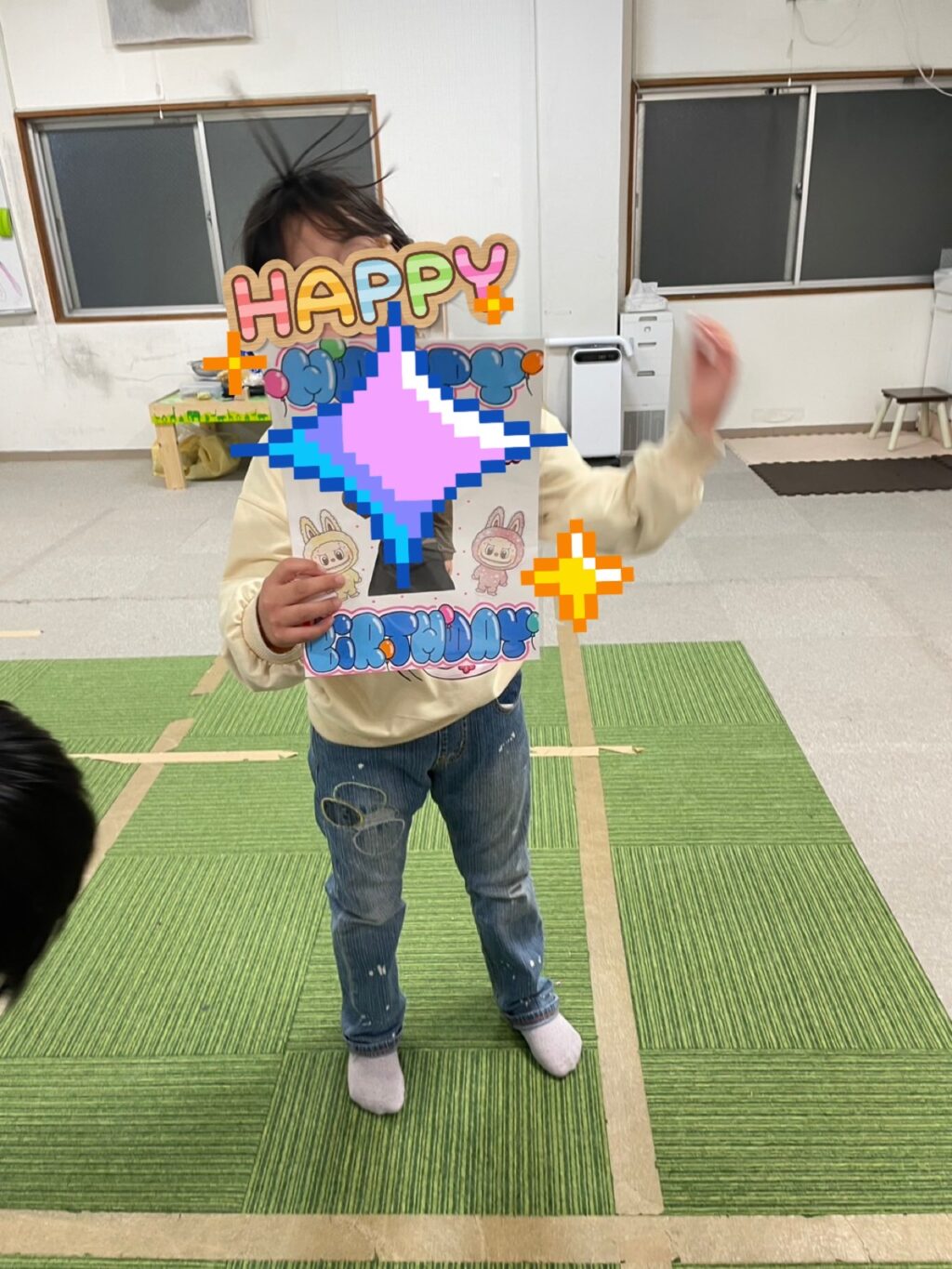昨日がお誕生日だったお友だち🎂お友だち達がbirthday songを歌い、スタッフの手作りカードをプレゼント🎁シャイなお友だちですが、とびっきりの笑顔を見せてくれました😍😍