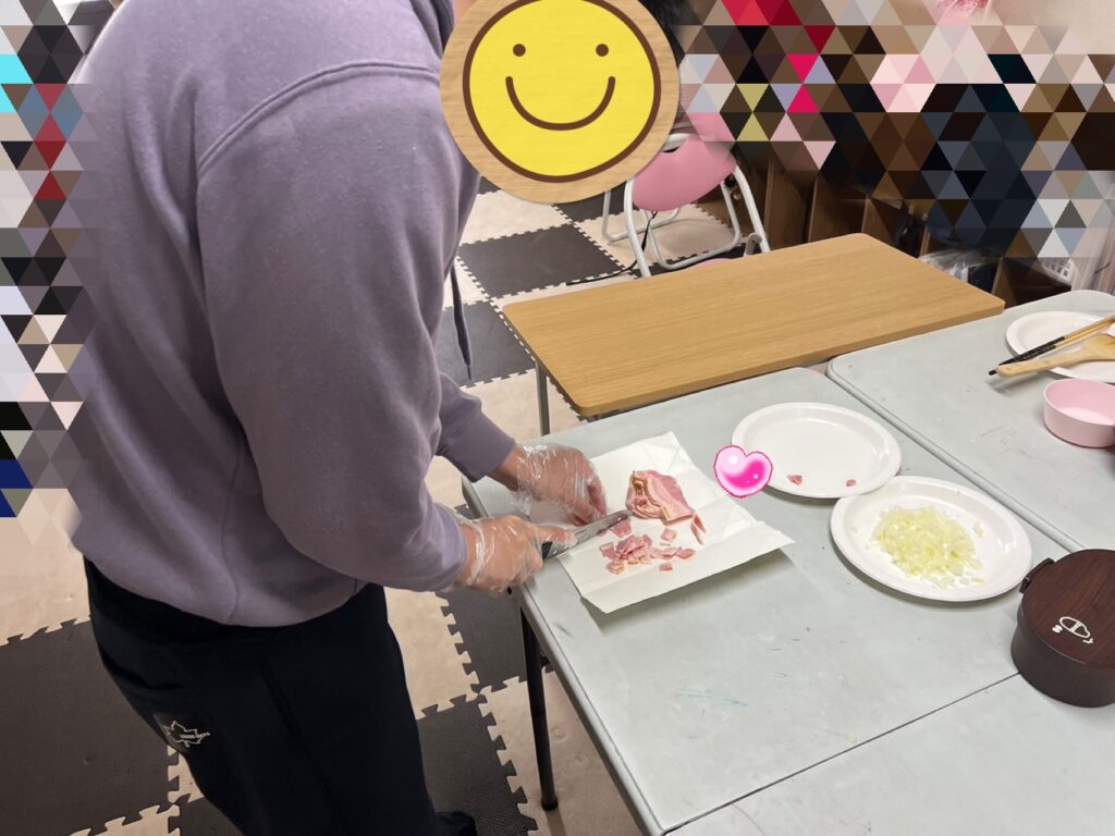 ベーコン🥓をカットして、ブンブンチョッパーの出番になると